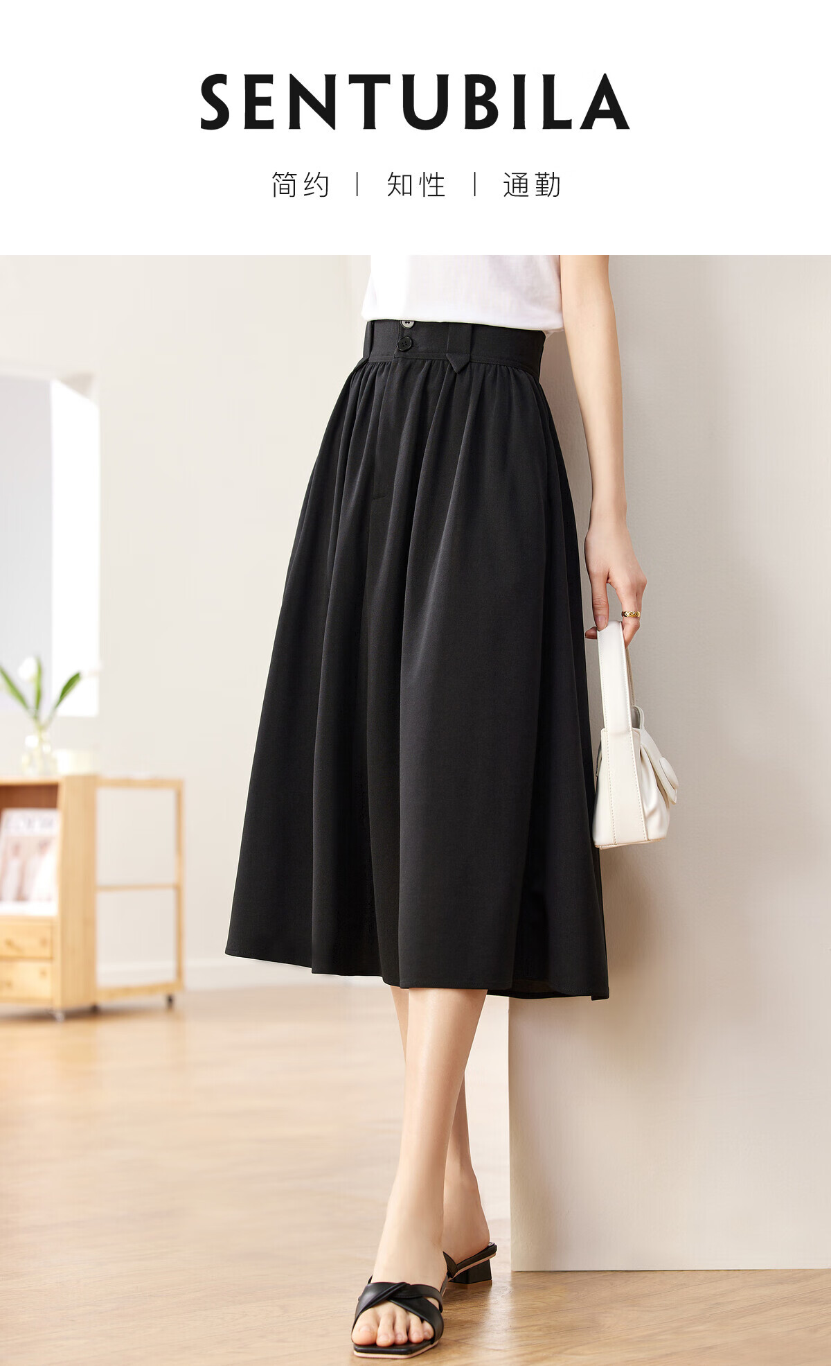 商品名称:尚都比拉2023夏季半身裙中长款复古遮肉显瘦a字伞裙职业通勤裙子 黑色 L