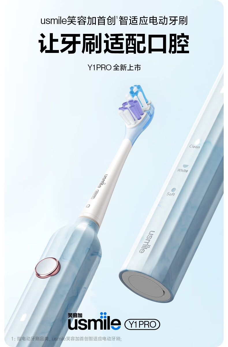 商品名称:usmile 笑容加 电动牙刷 成人声波震动 情侣电动牙刷 送男友/送女友 Y1Pro时光灰