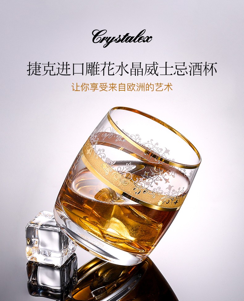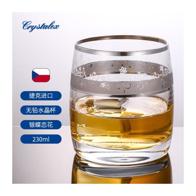 商品名称:CRYSTALEX捷克进口无铅水晶酒杯水杯创意描金啤酒杯威士忌杯酒具 银蝶恋花230ml