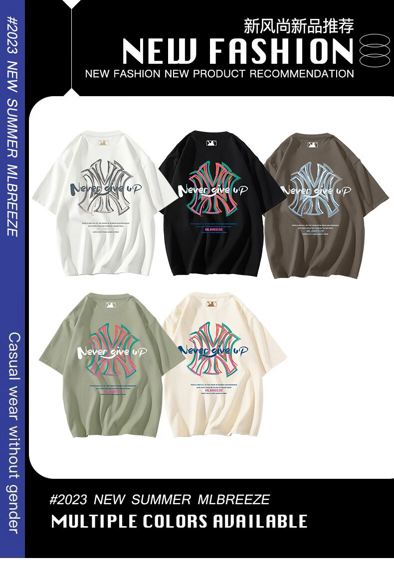 商品名称:MLBREEZE夏季宽松短袖t恤男女情侣装半袖大码潮流上衣打底衫衣服男装夏装 (008)杏色 L(125-155斤)