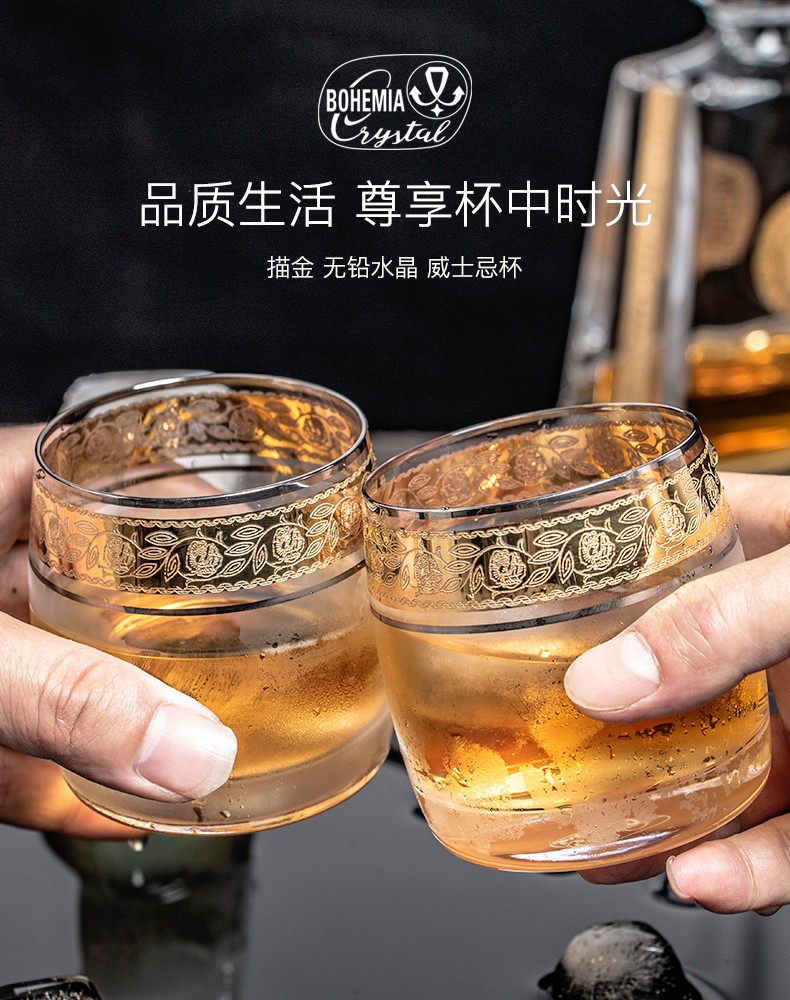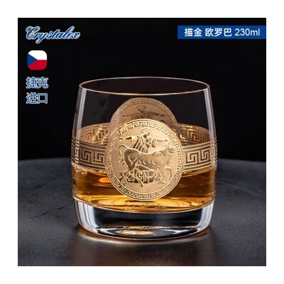 商品名称:CRYSTALEX捷克进口威士忌酒杯描金啤酒杯水杯家用欧式无铅水晶杯洋酒杯 描金欧罗巴230ml