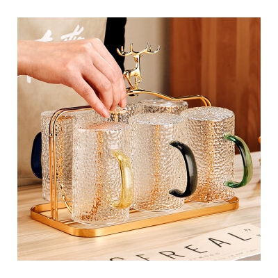 商品名称:格娜斯 日式锤纹玻璃杯带把手水杯套装家用客厅待客茶杯家庭喝水杯子