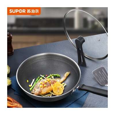 苏泊尔SUPOR 不锈钢蜂窝不易粘炒菜锅32cm煎锅燃气电磁炉通用 EC32JKC01