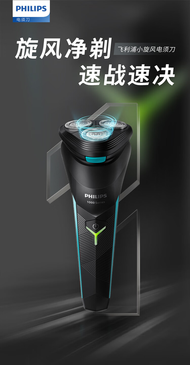 飞利浦(PHILIPS)电动剃须刀(1系升级款)小旋风刮胡刀S1115/02【男士礼物】