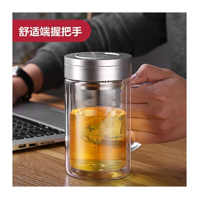 商品名称:富光 健牌双层玻璃杯支持团购定制茶杯办公杯带把 大容量男女水杯子